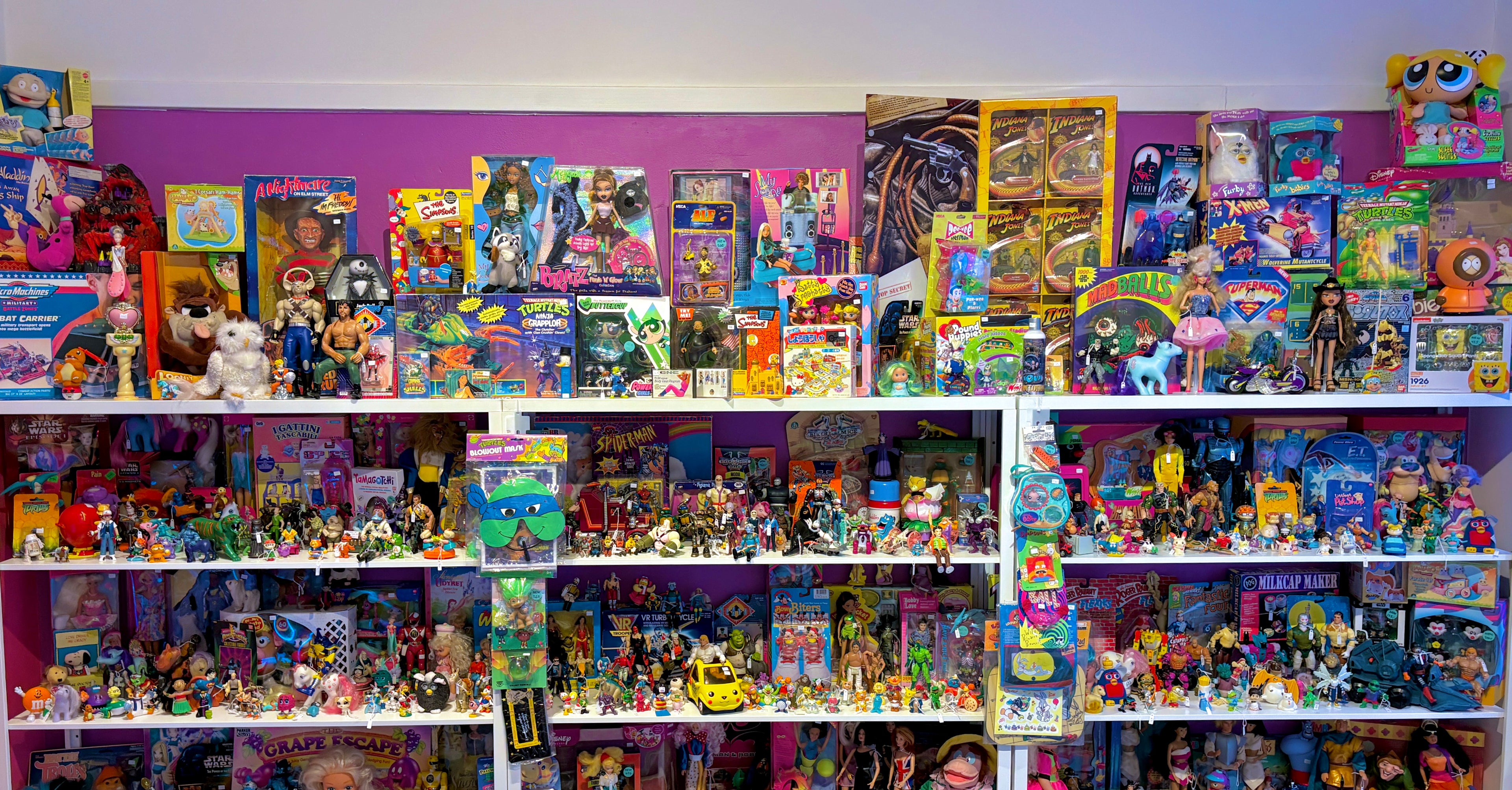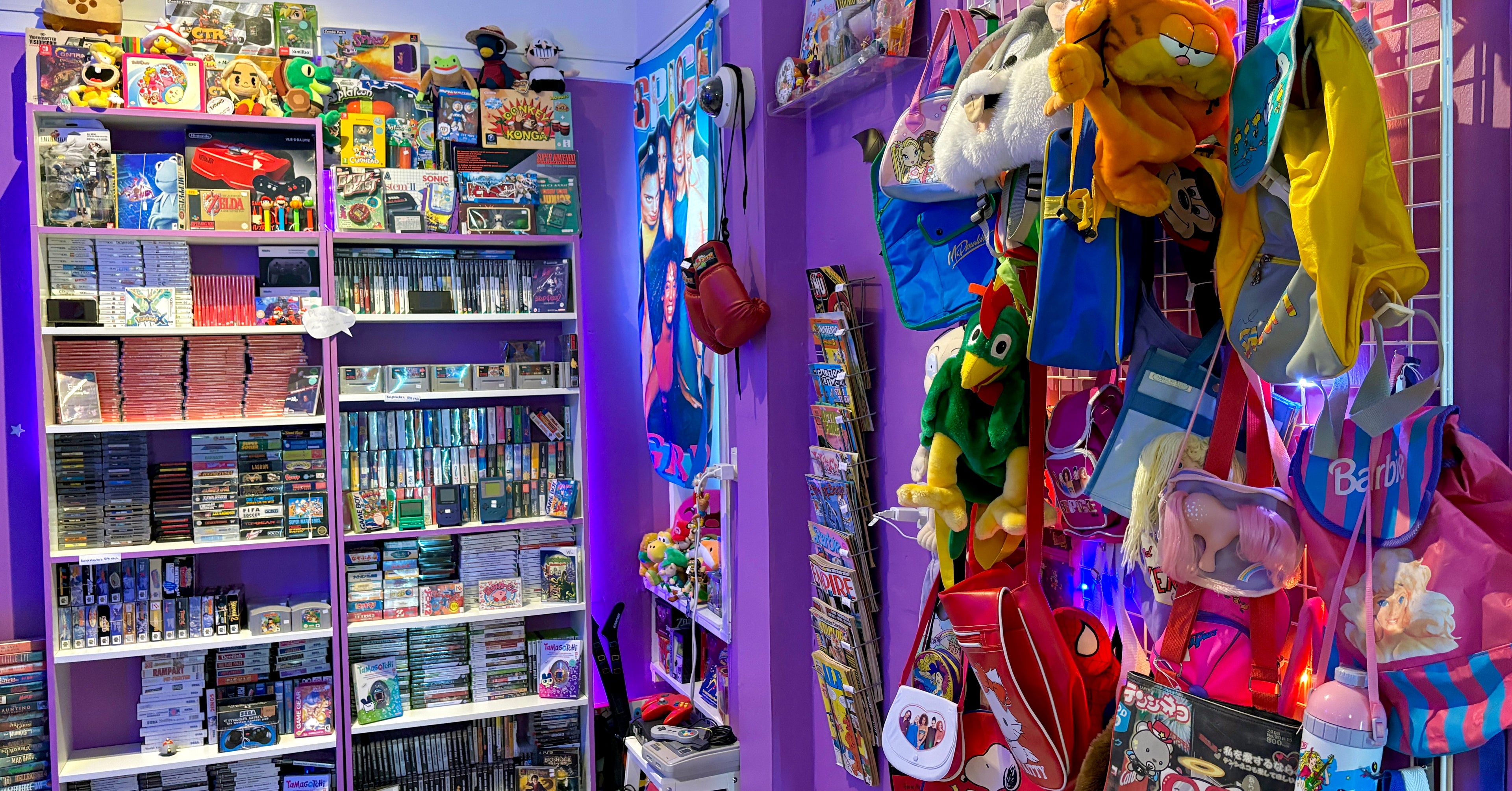Here you can find vintage toys, retro games, merchandise, clothing and more. We also have a selection of handpicked, modern products, including indie-game merch from Fangamer, and just things we personally find cool in general.