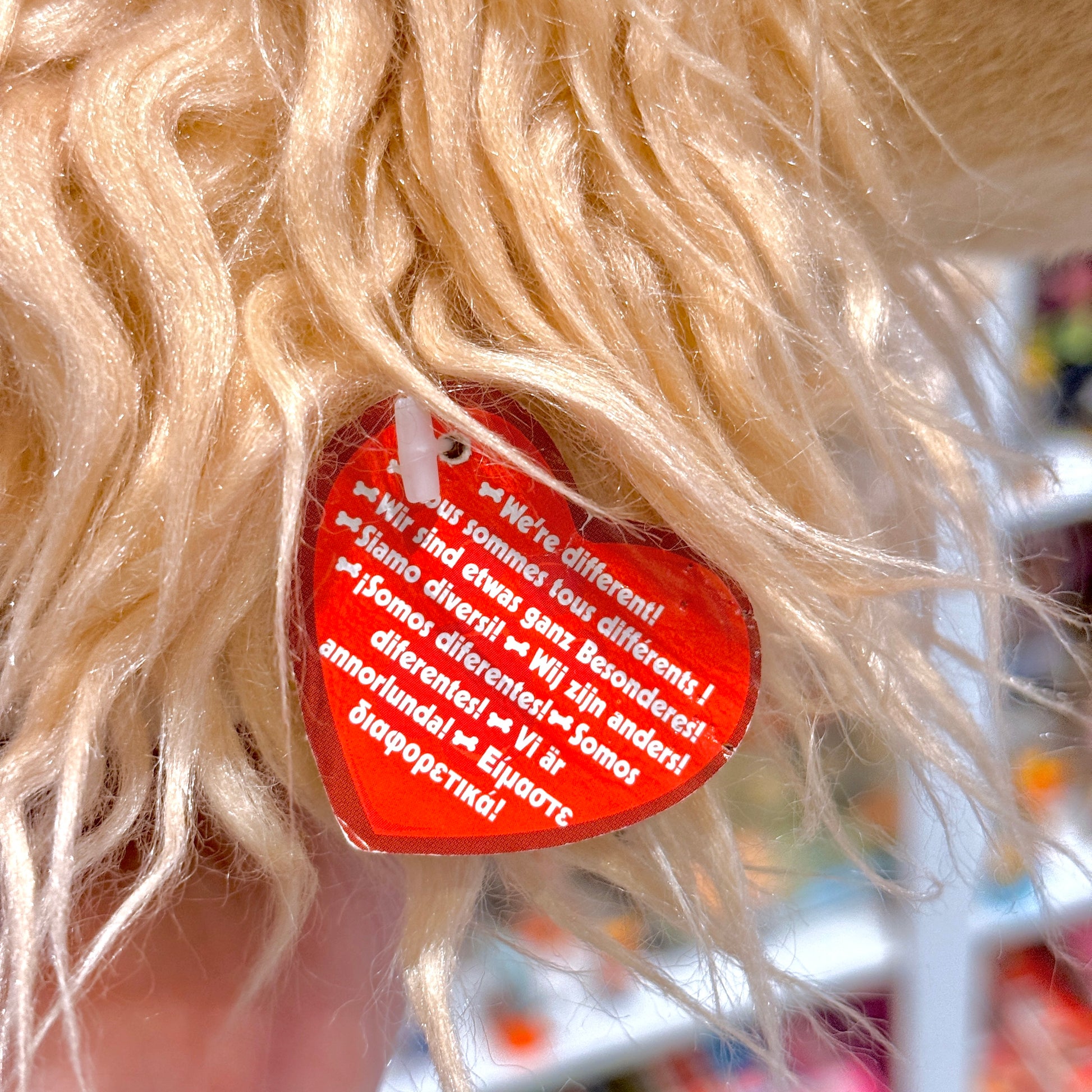 It still has 1 out of 2 tags, that were originally attached to the plush (the one missing, was found on it's collar. It still has a little remnant of it though).