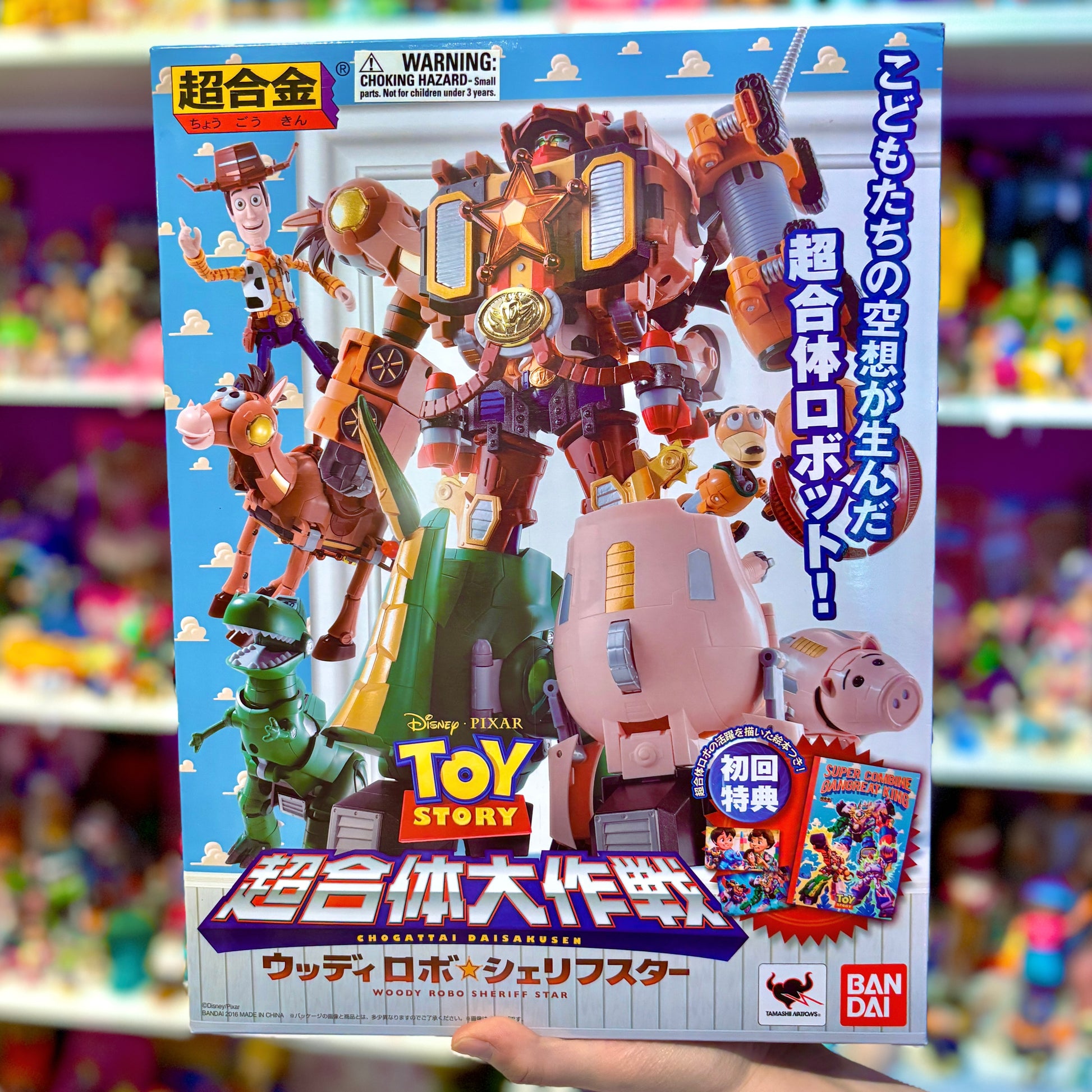 We didn't know this existed unil we saw it, and we just HAD to have it. I mean... It's the characters from Toy Story as robots that can be combined to one big ass robot. There's also another version of this with Buzz Lightyear called Buzz the Space Ranger Robo and together they can form the Gan Great King.